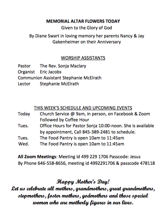 May 12 Worship service video – Click link to view video of May 12