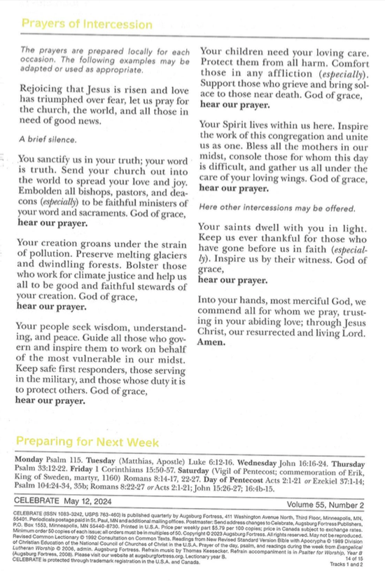 Bulletin– May 12, 2024 – Mothers Day