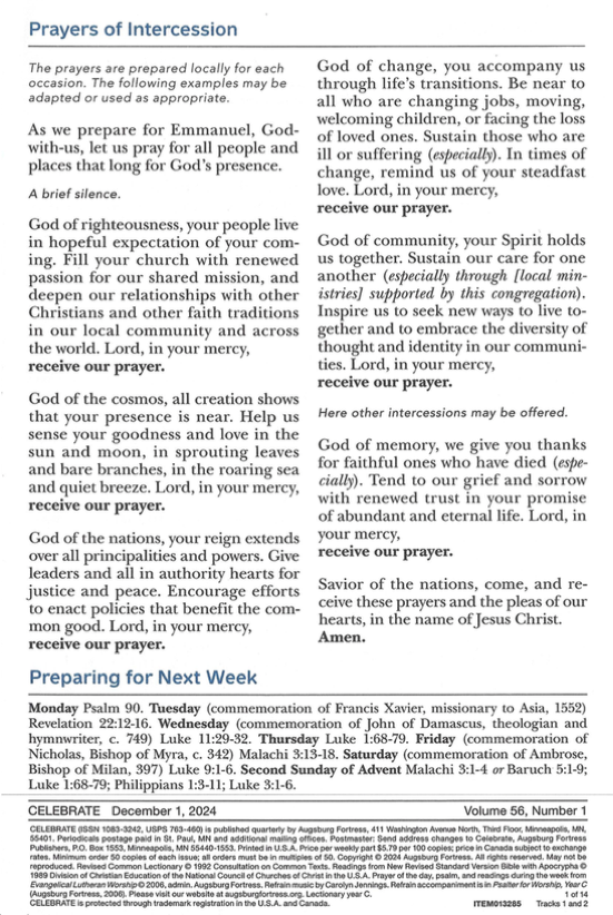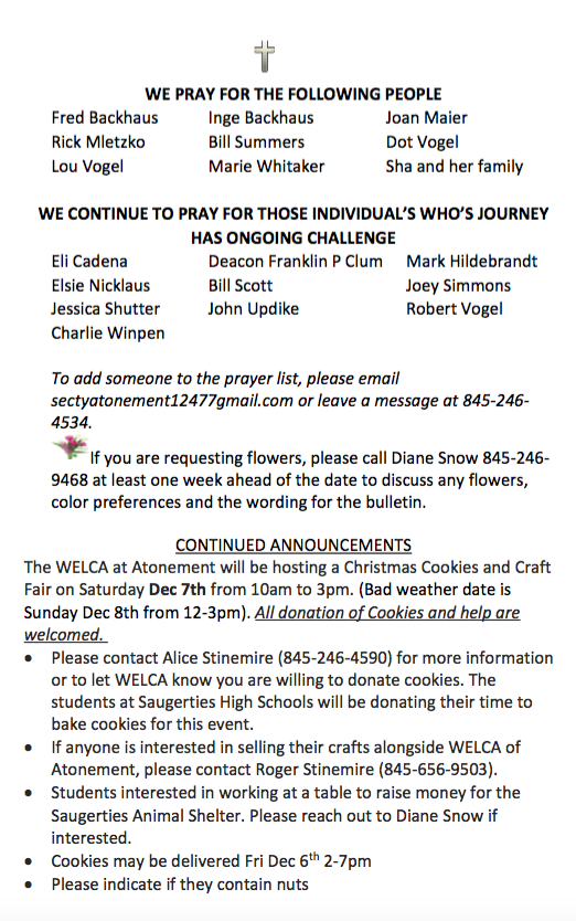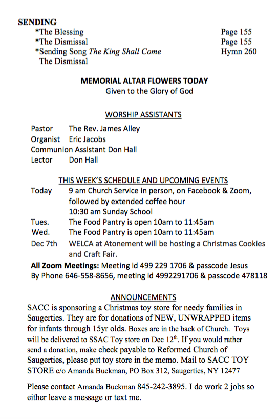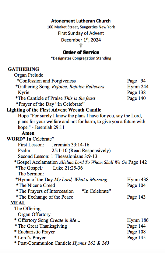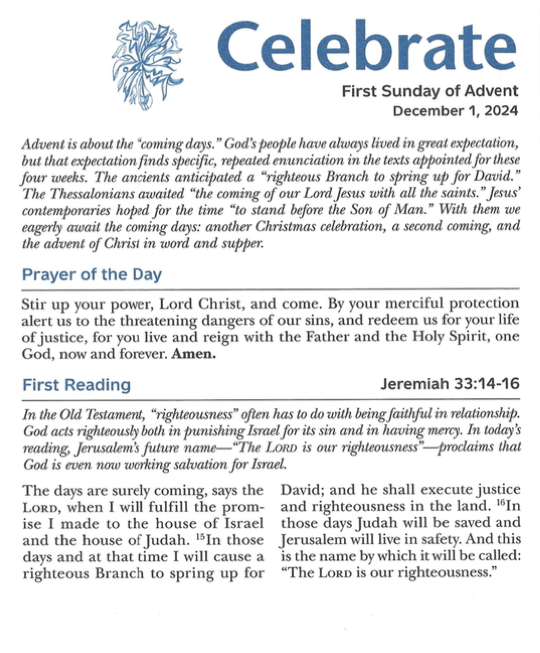 December 1 Worship service video – Click link to view video of December 1, 2024