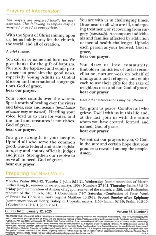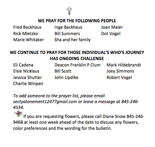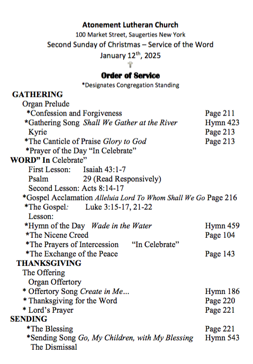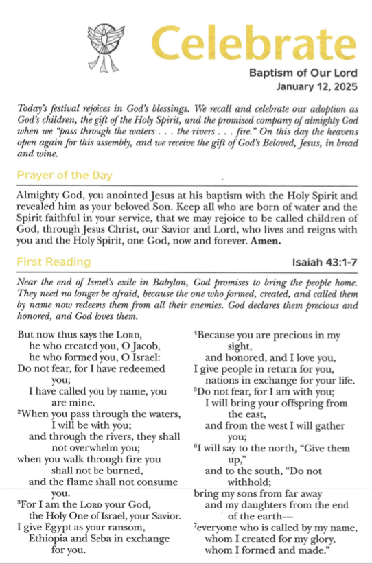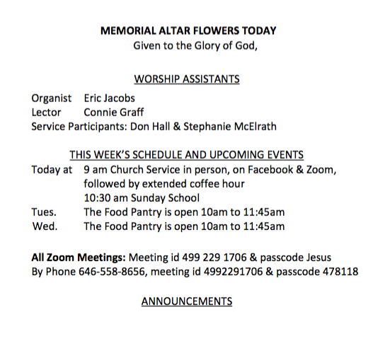 Usage Note: In order to view the recorded service and the Bulletin/Celebrate insert at the same time, right click on the above link and select ‘Open Link in New Window’. Once the new window appears, click the triangular start button to begin playing the recording. Then return to this window to view the Bulletin or Celebrate as needed. You can resize and/or reposition either/both windows as needed to view both at the same time