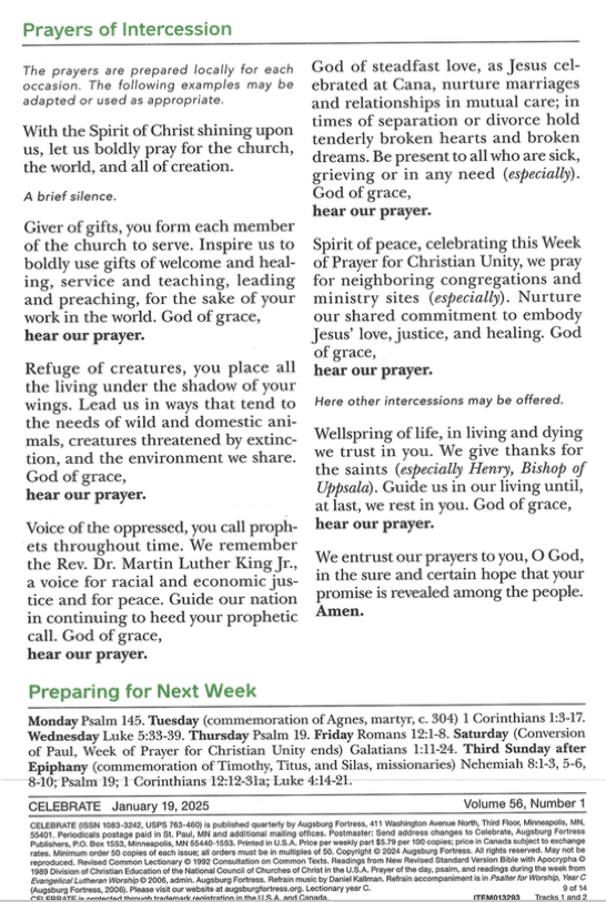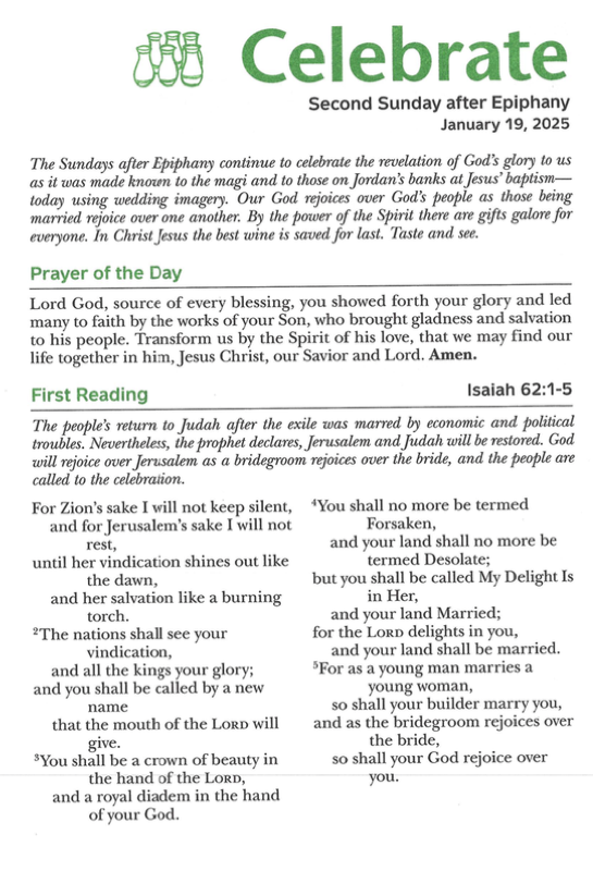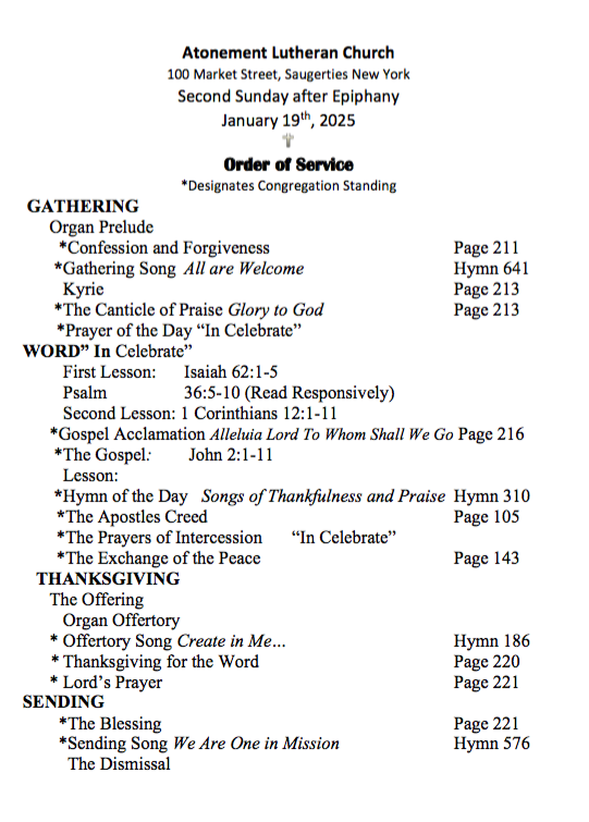 January 19  Worship service video – Click link to view video of January 19, 2024