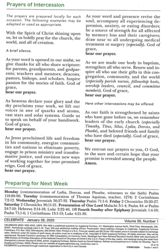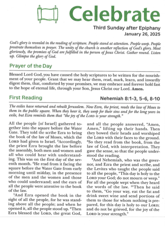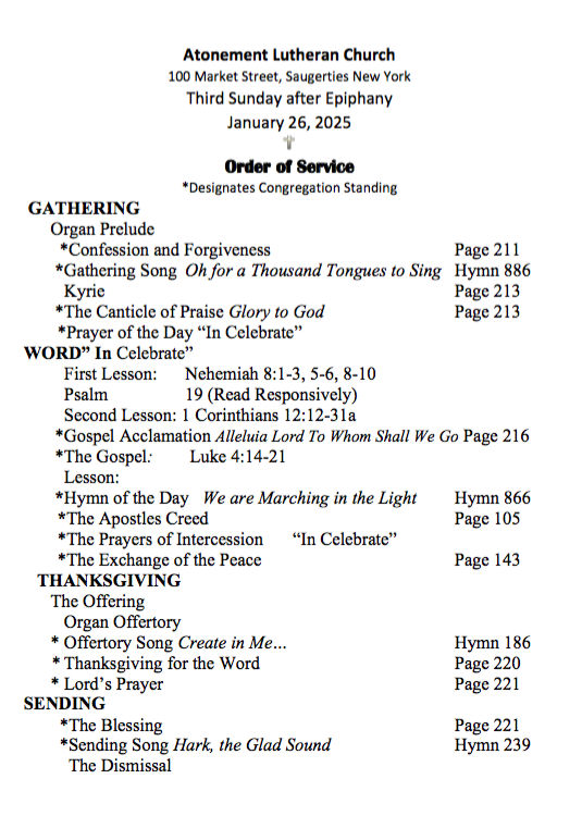 January 26 Worship service video – Click link to view video of January 26, 2024