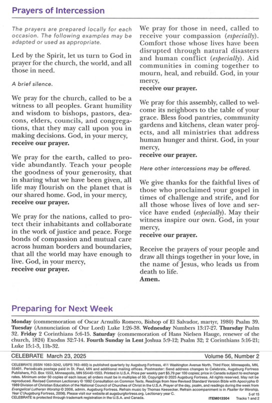 Usage Note: In order to view the recorded service and the Bulletin/Celebrate insert at the same time, right click on the above link and select ‘Open Link in New Window’. Once the new window appears, click the triangular start button to begin playing the recording. Then return to this window to view the Bulletin or Celebrate as needed. You can resize and/or reposition either/both windows as needed to view both at the same time