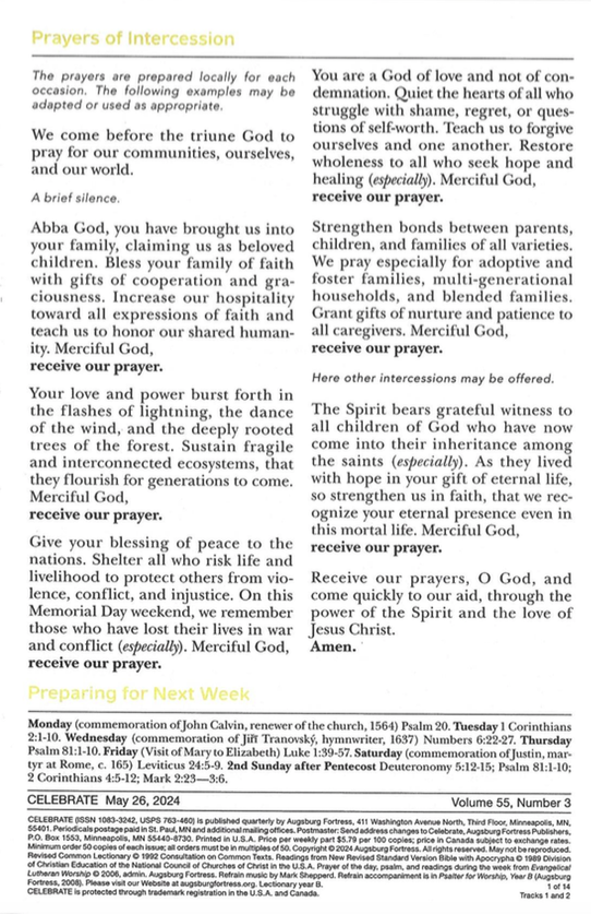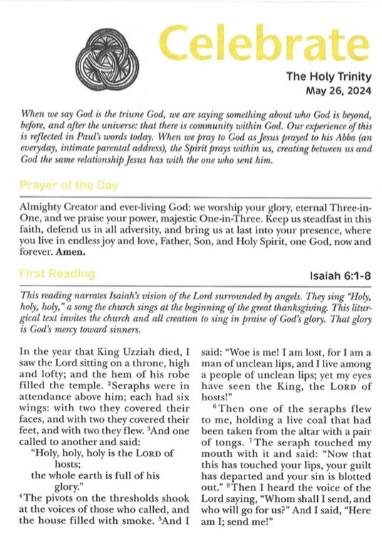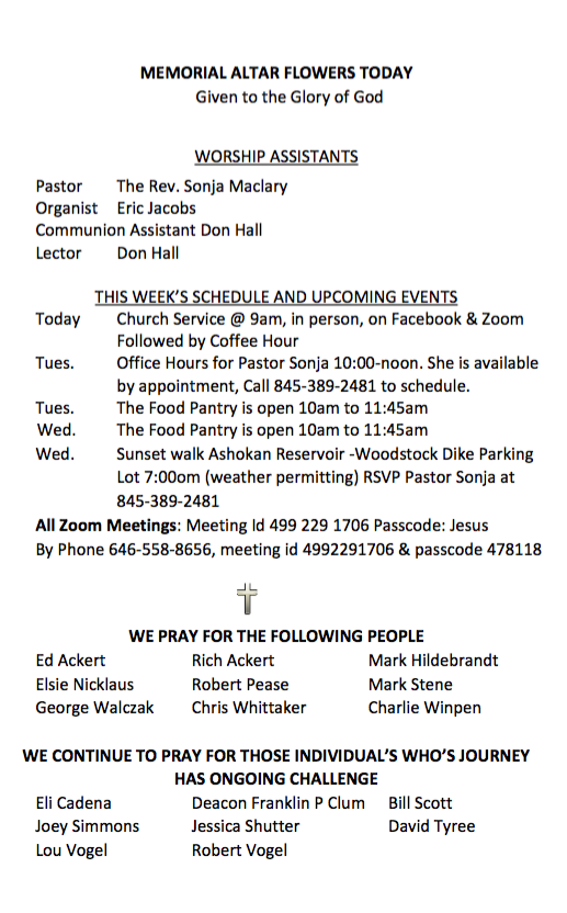 Usage Note: In order to view the recorded service and the Bulletin/Celebrate insert at the same time, right click on the above link and select ‘Open Link in New Window’. Once the new window appears, click the triangular start button to begin playing the recording. Then return to this window to view the Bulletin or Celebrate as needed. You can resize and/or reposition either/both windows as needed to view both at the same time