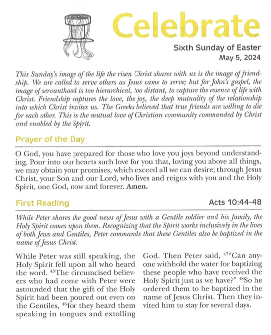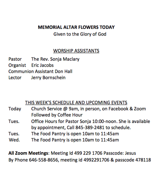 Usage Note: In order to view the recorded service and the Bulletin/Celebrate insert at the same time, right click on the above link and select ‘Open Link in New Window’. Once the new window appears, click the triangular start button to begin playing the recording. Then return to this window to view the Bulletin or Celebrate as needed. You can resize and/or reposition either/both windows as needed to view both at the same time