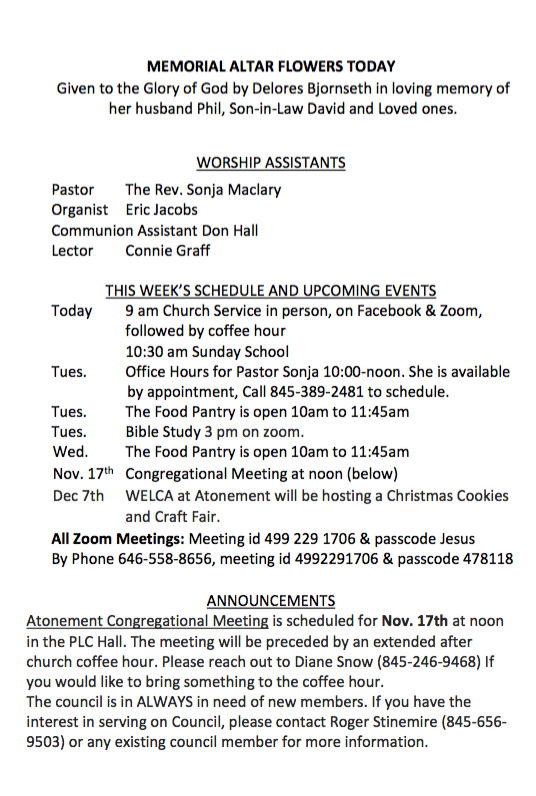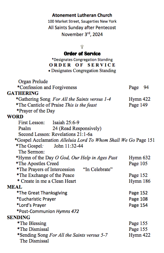 November 3 Worship service video – Click link to view video of Worship November 3, 2024