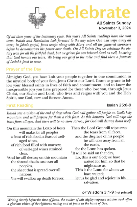 Usage Note: In order to view the recorded service and the Bulletin/Celebrate insert at the same time, right click on the above link and select ‘Open Link in New Window’. Once the new window appears, click the triangular start button to begin playing the recording. Then return to this window to view the Bulletin or Celebrate as needed. You can resize and/or reposition either/both windows as needed to view both at the same time