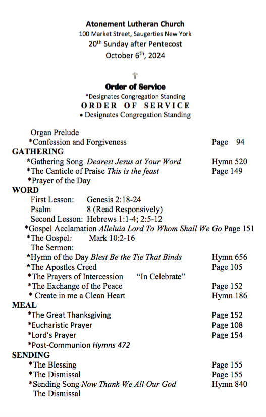 October 6 Worship service video – Click link to view video of October 6, 2024
